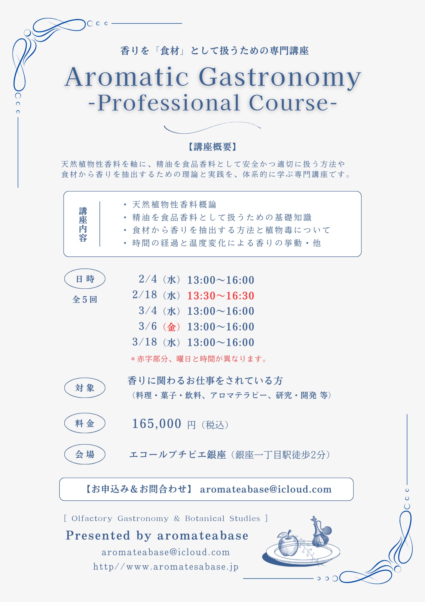Aromatic gastronomy Theoryー香りや花について学びを深めたいプロフェッショナルのための専門課程ー